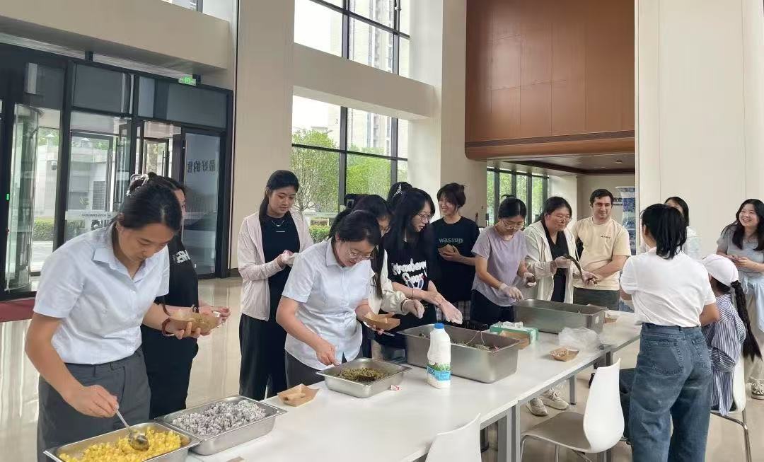 Как только мероприятие началось, все бросились к длинным столам и не могли дождаться, чтобы начать свои собственные «творения». Кто-то соединял драконий фрукт с йогуртом, чтобы сделать пельмени свежими и вкусными, кто-то выбирал кишмиш и арахисовые зерна, стремясь к насыщенной сладости. Кто-то выбрал изюм и арахис для насыщенного и сладкого вкуса, а сочетание боярышника и дробленого Oreos придало пельменям современный и стильный вид.